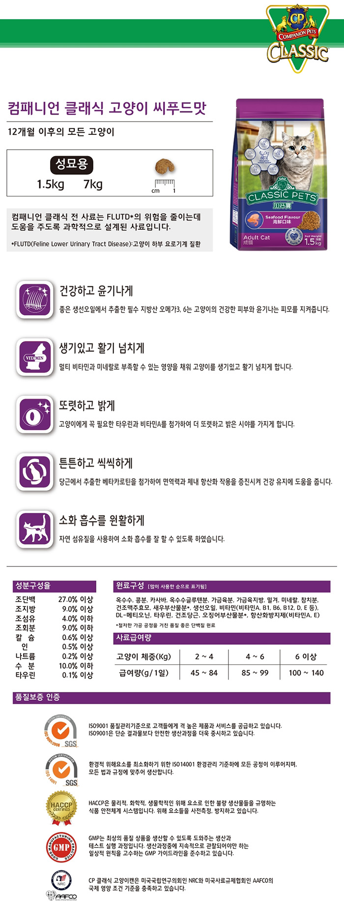 클레식펫 고양이는 오랜기간 세계 각국에서 사랑받아온 전통있는 사료 입니다.
